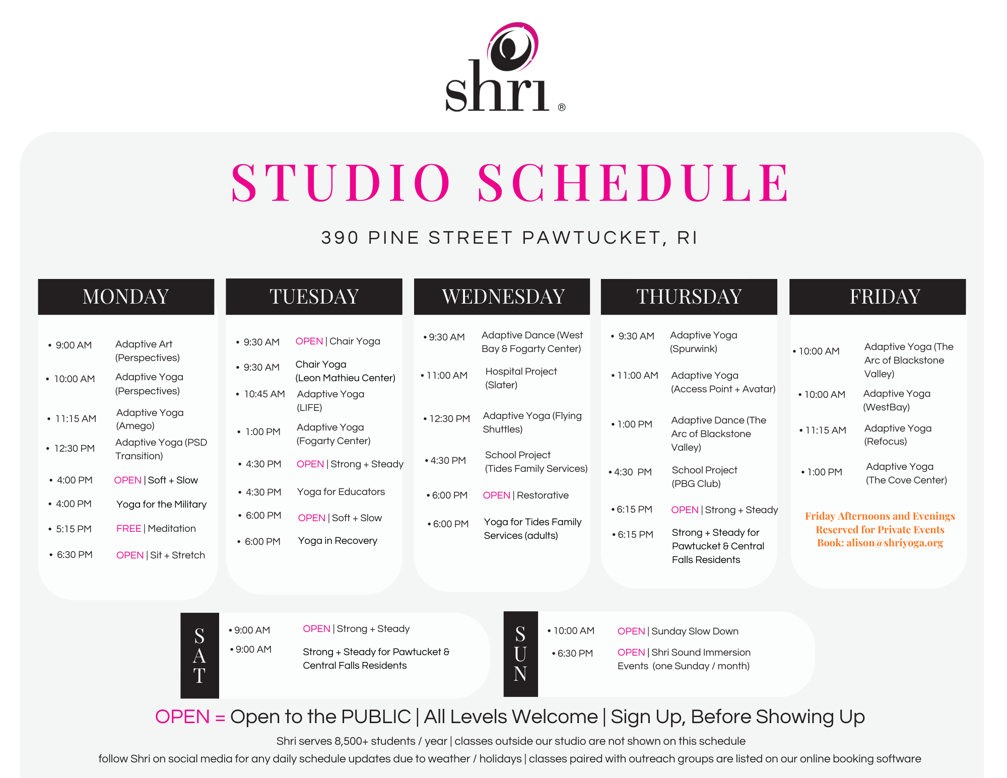 (no private outreach groups included in this studio schedule view below | these are all the current classes open to the general public)